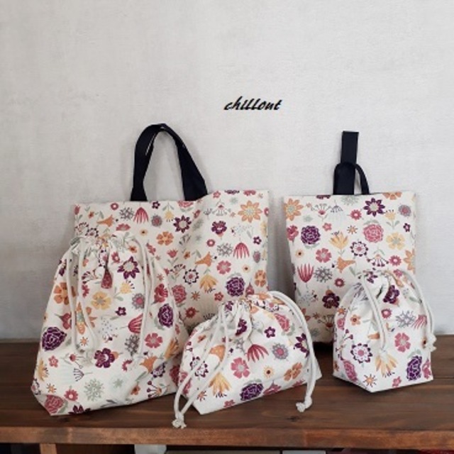 北欧デザインの花柄の入園バッグ5点セットが出来上がりました。 北欧リネンに花柄がとても上品でおしゃれです。 サイズも一般的に推奨されている大きさでお作りしましたので こちらの5点セット以外に買い足す必要はほぼないと思います。 レッスンバッグと靴袋の内布は汚れが目立ちにくいブラックです。 お洗濯ももちろんしていただけるので清潔にお使いいただけます。 毎日使うものだから、丁寧に丈夫にお作りしました。 ぜひ新生活に5点セットで楽しく元気にお迎えください。 【サイズ】 素材:ソフトリネン ①レッスンバッグ 縦31.5㎝ 横41.5㎝ ②靴袋 縦27㎝ 横14.5㎝ マチ8.5㎝ ③お着換え巾着 縦28㎝ 横19㎝ マチ8㎝ ④巾着 縦17.5㎝ 横18.5㎝ マチ8㎝ ⑤巾着 縦18㎝ 横10㎝ マチ8㎝ 5点セットなのでもう買い足す必要なし! 是非この機会にどうぞ。 端処理はロックミシンですのでお洗濯も安心、長くご愛用頂けます。 園児バッグ・通園バッグは人気商品のため、オーダーは承っておりません。 【ご注意】 ・こちらの商品はハンドメイドです。 ・心を込めて制作した商品を販売しておりますが、サイズの誤差や差異等、ご了承ください。 ・色味に関しましてもできるだけ自然光にて撮影しております。 ・ハンドメイド商品のため、チャコペンなどの印が残っている場合があります。 【配送に関して】 ・圧縮してお届けいたします。 ・届きましたらお洗濯後、アイロンがけをお願いいたします。 以上、既製品ではない旨、ご理解の上お買い上げください。 #入園バッグ #入園バッグセット #5点セット #通園バッグ #通園バッグセット #通学バッグ #通学バッグセット #幼稚園 #保育園 #レッスンバッグ #靴袋 #お着換えバッグ #お弁当袋 #コップ袋 #手作り #ハンドメイド #世界に一つ #オリジナル #かわいい #北欧 #北欧デザイン #花柄 #ナチュラル #ソフトリネン