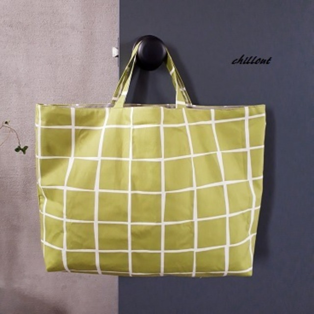 大き目サイズのトートバッグが出来上がりました! ライムグリーンにスクエア柄。 北欧ナチュラルテイストがお好きな方はぜひ! 【サイズ】 縦35㎝ 横42㎝ マチ9㎝ お買い物のエコバッグとしても重宝する大きさです。 内布は汚れが目立ちにくいグレー。 軽い素材でできているので使いやすいと思います。 もちろんお洗濯もしていただけますのでいつでも清潔にお使いいただけます。 爽やかなライムグリーンのバッグでお出かけしませんか? 【ご注意】 ・こちらの商品はハンドメイドです。 ・心を込めて制作した商品を販売しておりますが、サイズの誤差や差異等、ご了承ください。 ・色味に関しましてもできるだけ自然光にて撮影しております。 ・ハンドメイド商品のため、チャコペンなどの印が残っている場合があります。 【配送に関して】 ・圧縮してお届けいたします。 ・届きましたらお洗濯後、アイロンがけをお願いいたします。 以上、既製品ではない旨、ご理解の上お買い上げください。 #ライムグリーン #格子柄 #北欧デザイン #北欧ナチュラル #トートバッグ #エコバッグ #大き目バッグ #男前デザイン #男女兼用 #マチ付きバッグ #使いやすいサイズ