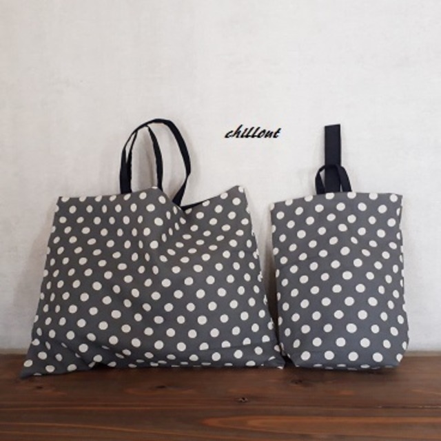 【ソフトリネン】入園バッグ2点セット:ドット:チャコールグレー【0465】