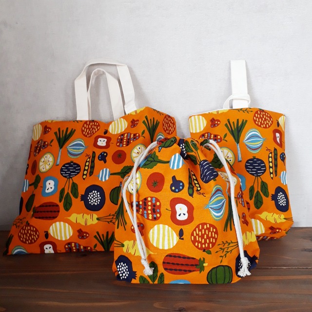 ポップなオレンジ色のフルーツバスケット柄の入園バッグセットが出来上がりました! ポップな柄はちょっと一目置かれる事間違いなし! かわいいけれどかっこいい、そんなデザインです! 3点すべてが同柄で切り替え無し! とっておきのセットを是非どうぞ! 【セット内容:サイズ】 ①レッスンバッグ 縦30㎝ 横40㎝ ②靴袋 縦27.㎝ 横15.5㎝ マチ7㎝ ③お着換え巾着 縦28㎝ 横23㎝ マチ7㎝ スタンダードな3点セット。 是非この機会にどうぞ。 端処理はロックミシンですのでお洗濯も安心、長くご愛用頂けます。 園児バッグ・通園バッグは人気商品のため、オーダーは承っておりません。 【ご注意】こちらの商品はハンドメイドです。 心を込めて作られたものを販売しておりますが、 サイズの誤差や差異等、ご了承ください。 色味に関しましてもできるだけ自然光にて撮影しております。 以上、既製品ではない旨、ご理解の上お買い上げください。 #入園バッグ #入園バッグセット #3点セット #通園バッグ #通園バッグセット #通学バッグ #通学バッグセット #幼稚園 #保育園 #レッスンバッグ #靴袋 #お着換えバッグ #手作り #ハンドメイド #世界に一つ #オリジナル #かわいい #かっこいい