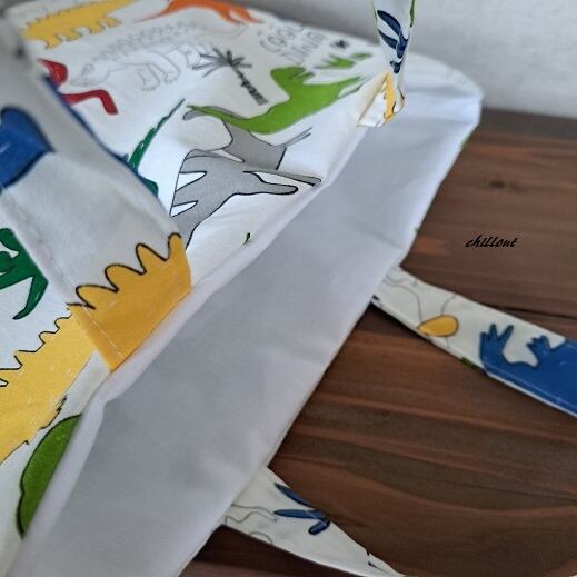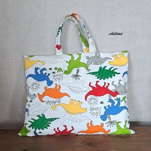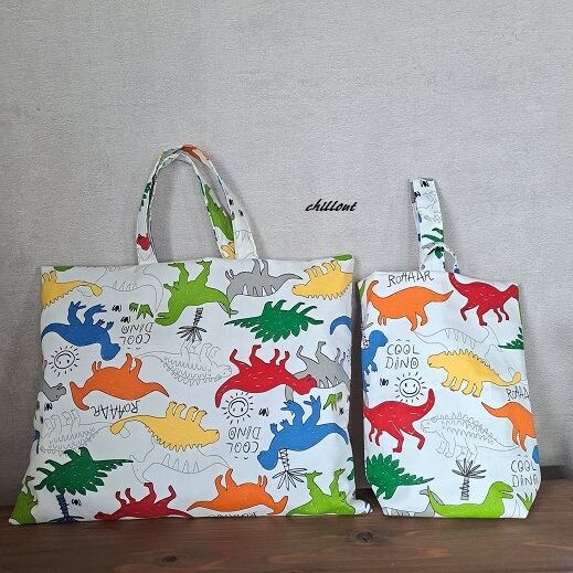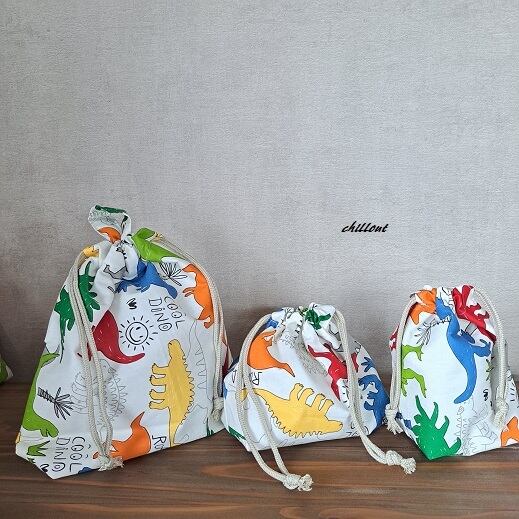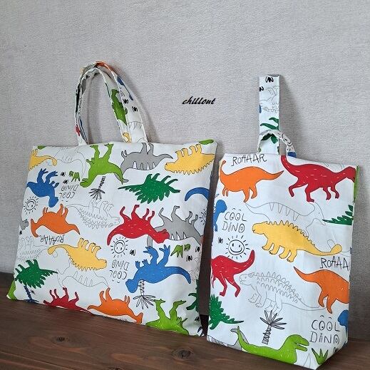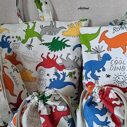 恐竜:ダイナソー柄の入園バッグ5点セットが出来上がりました!