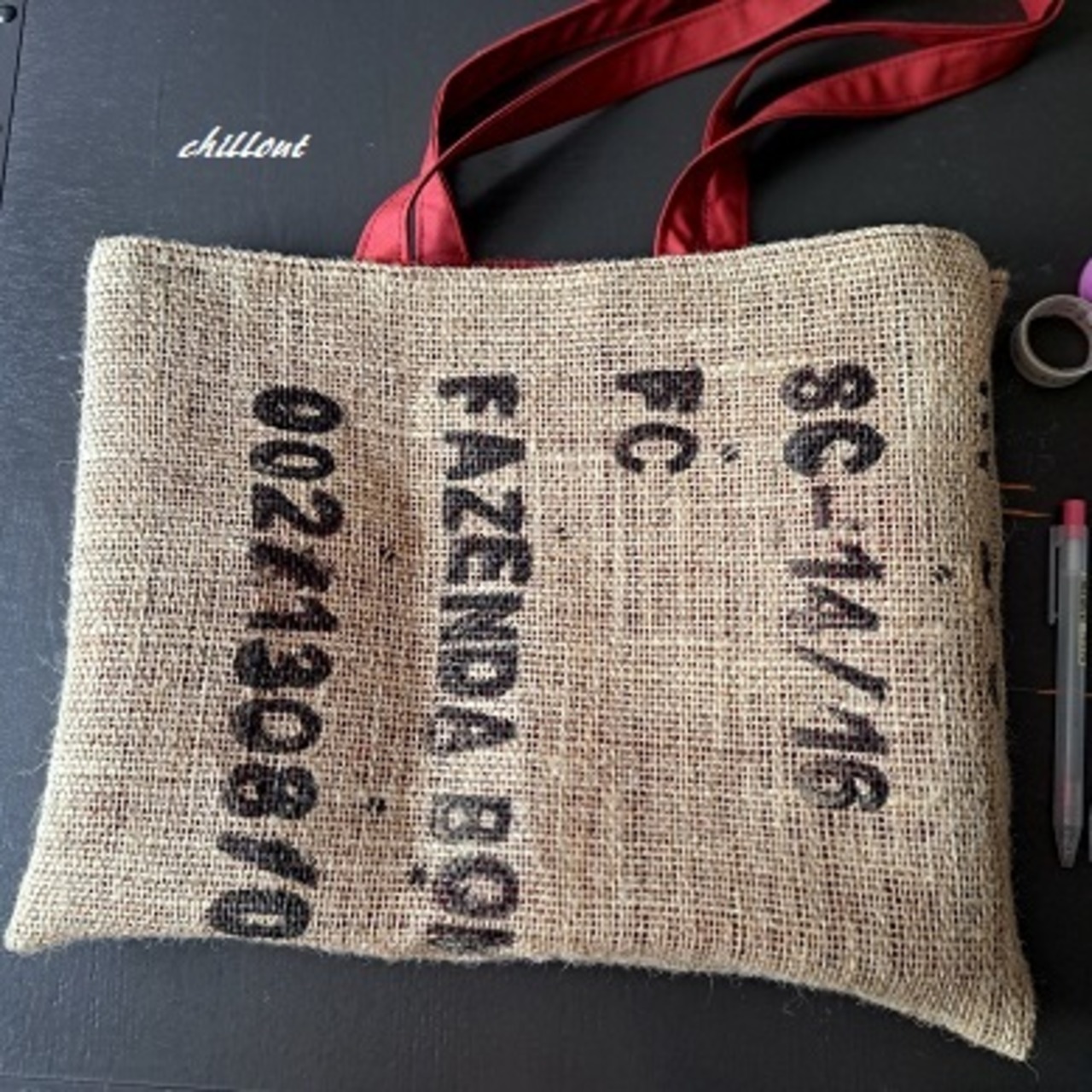 おしゃれなコーヒーの麻袋トートバッグが出来上がりました!