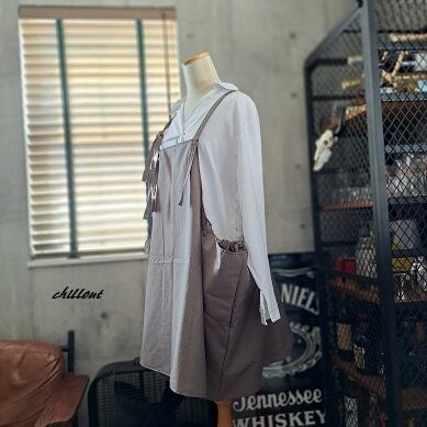 【背中がかわいい】エプロンドレス:チャコールグレー【0747】