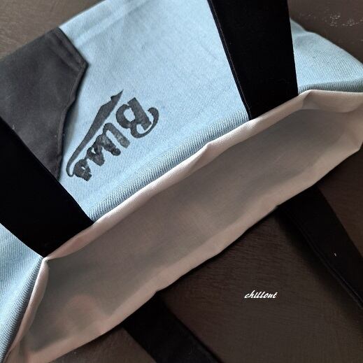 スカイブルーのデニムバッグが出来上がりました。