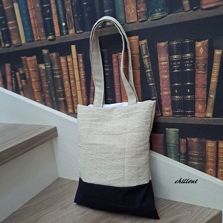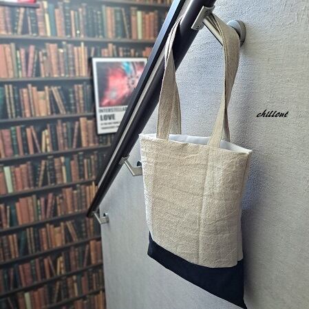 人気のリネン×ブラックの切替トートバッグが出来上がりました。