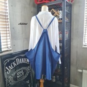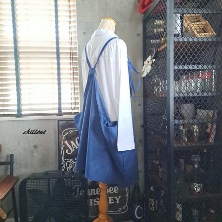 ブルーデニムのエプロンドレスが出来上がりました。