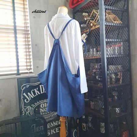 【背中がかわいい】エプロンドレス:デニム:ブルー【0914】