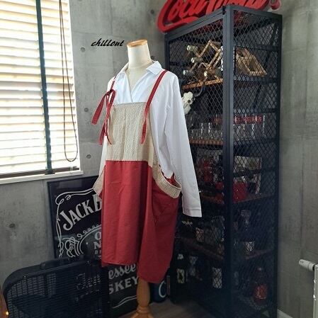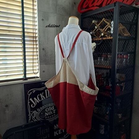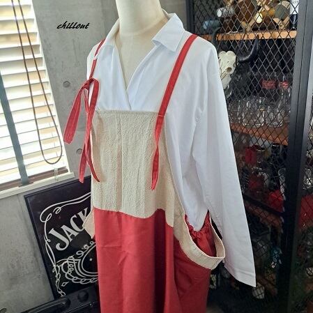 【背中がかわいい】エプロンドレス:リネン×レッド【0988】