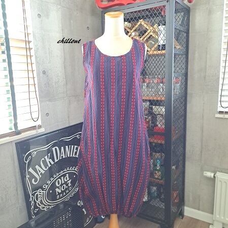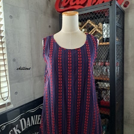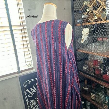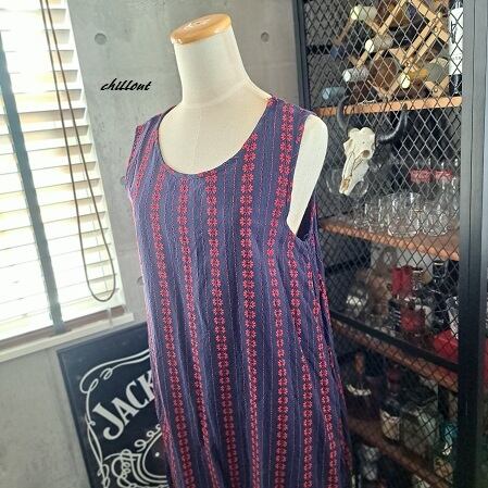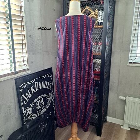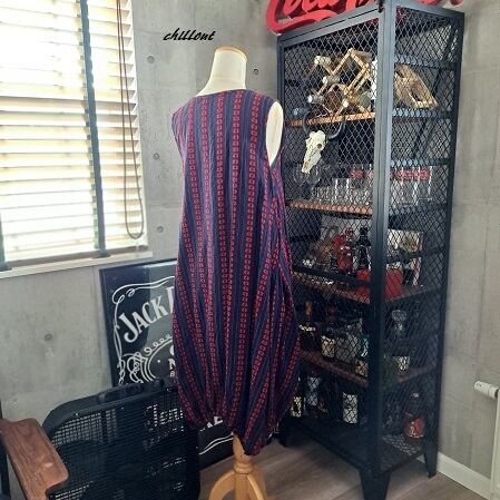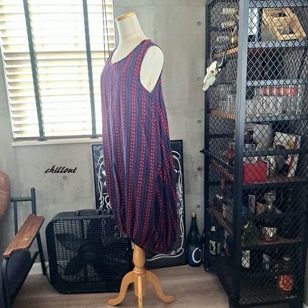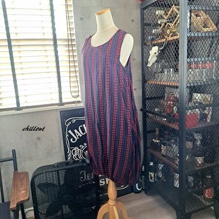 【バルーン】ワンピース:ノースリーブ:エキゾチックストライプ【0990】