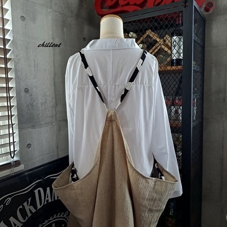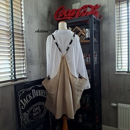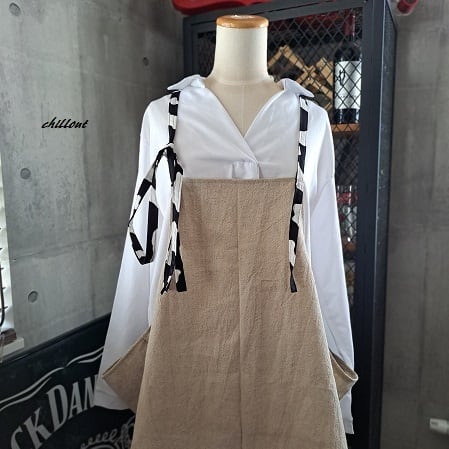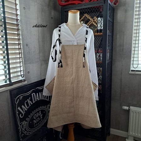 【背中がかわいい】エプロンドレス:ワッシャーリネン×牛柄【0904】