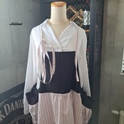 【背中がかわいい】マキシ:ギャザー:エプロンドレス:ブラック×ストライプ【1012】
