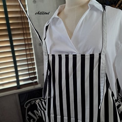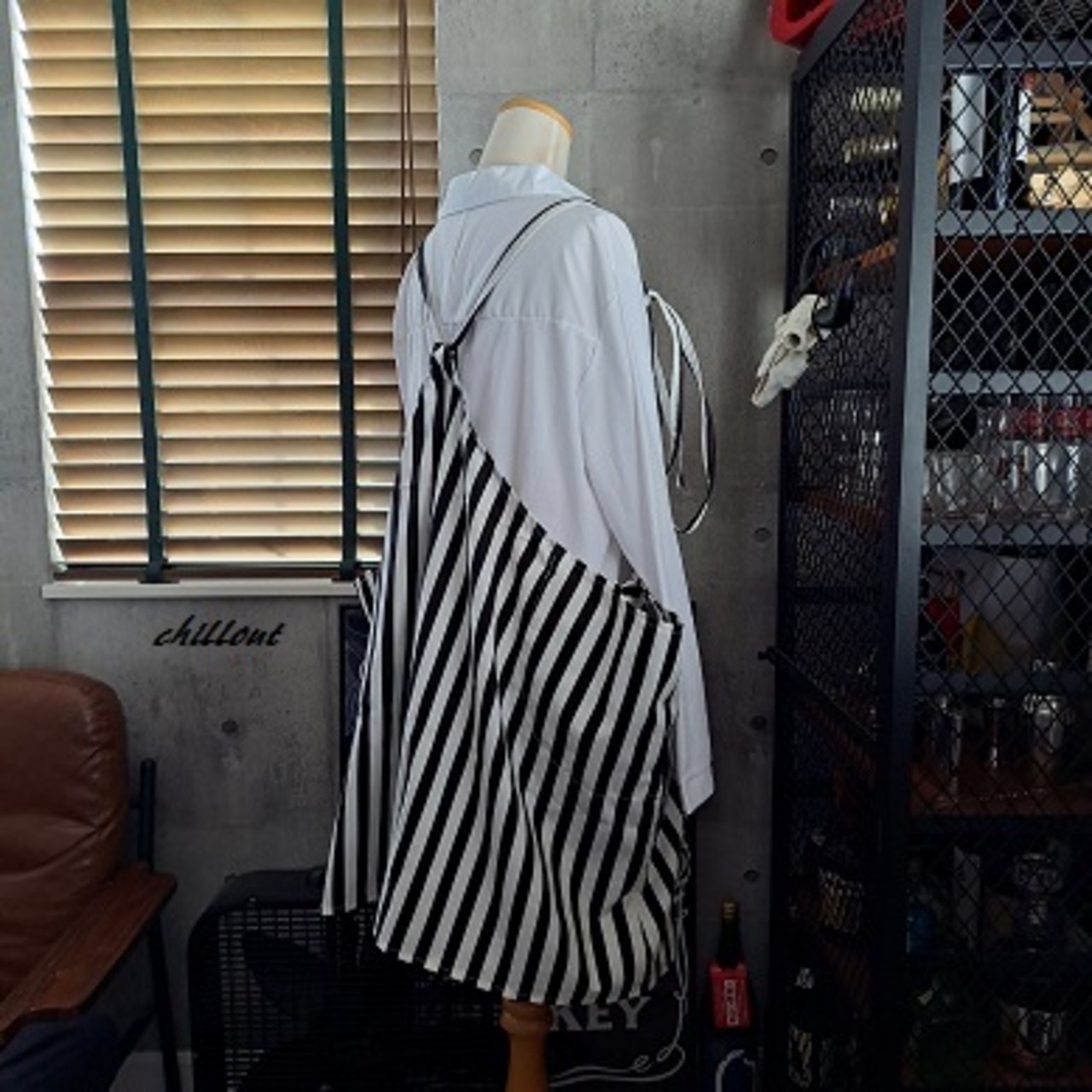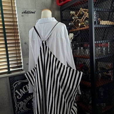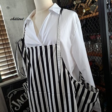 【背中がかわいい】エプロンドレス:モノトーン:ストライプ【0758】