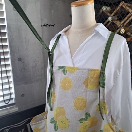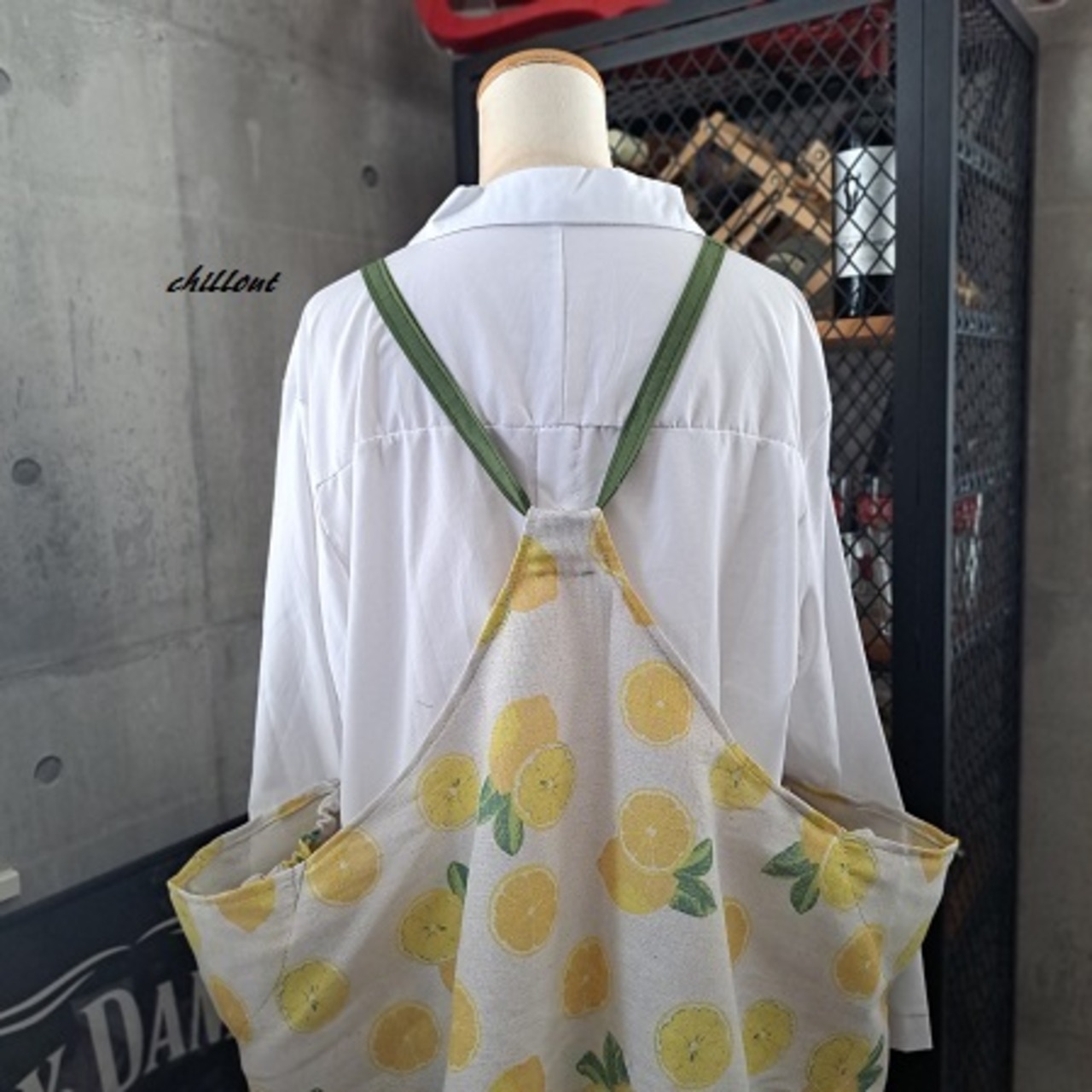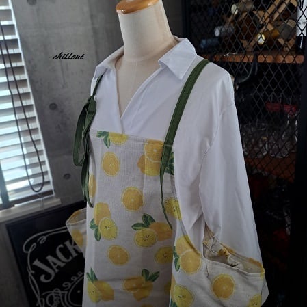 【背中がかわいい】エプロンドレス:レモン:ソフトリネン【0962】