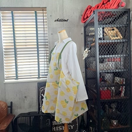 生地をふんだんに使ったおしゃれなデザインのエプロン。