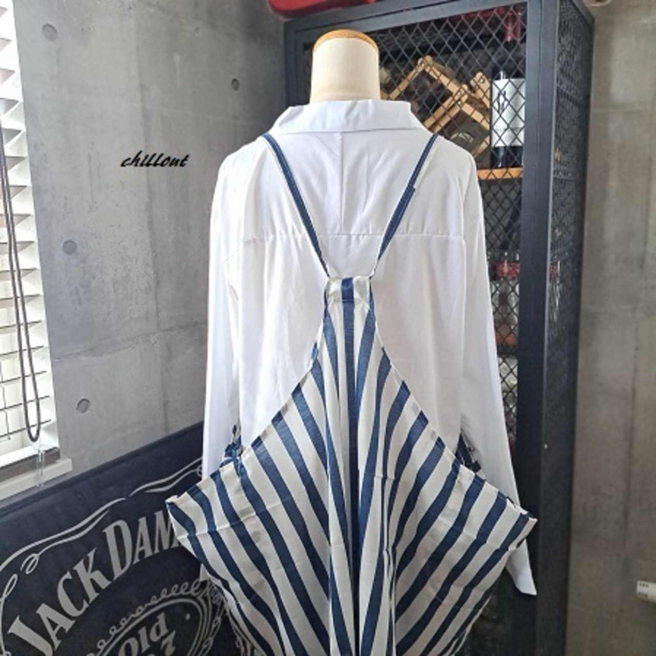 【背中がかわいい】エプロンドレス:ネイビー:ストライプ【1015】