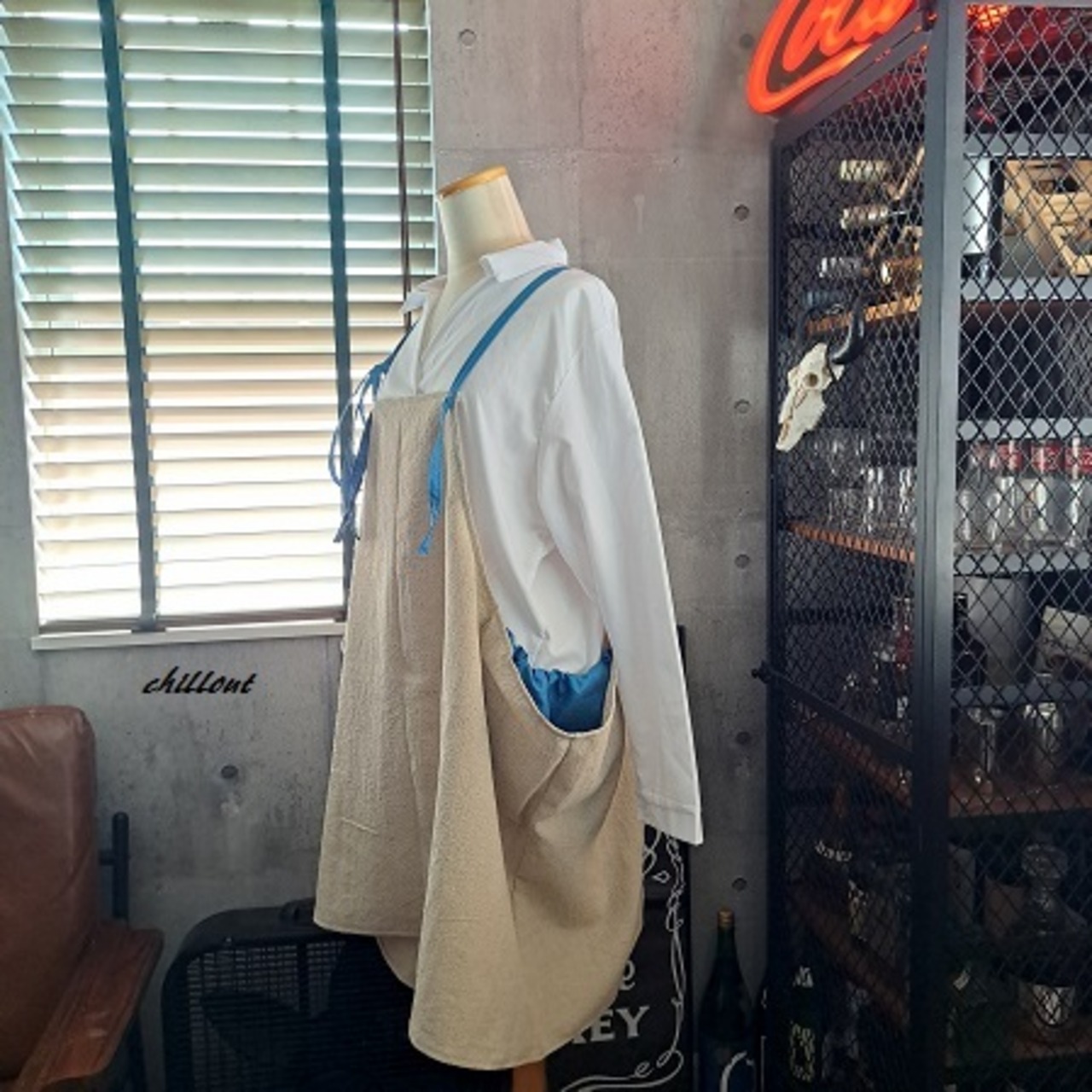 【背中がかわいい】エプロンドレス:リネン×セルリアンブルー【0931】