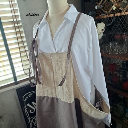 【背中がかわいい】エプロンドレス:リネン×ブラウン【0987】