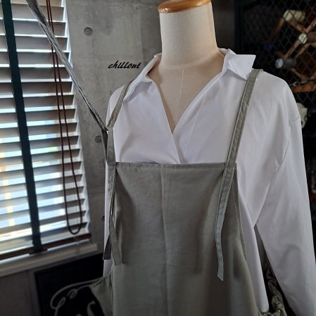 【背中がかわいい】マキシ:エプロンドレス:コットン:ピスタチオ【0973】