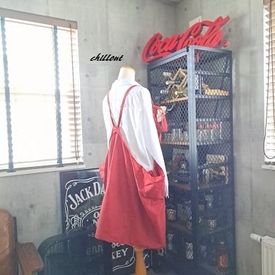 【背中がかわいい】エプロンドレス:ボルドー:LOVE BOTTLE:コットン【0745】