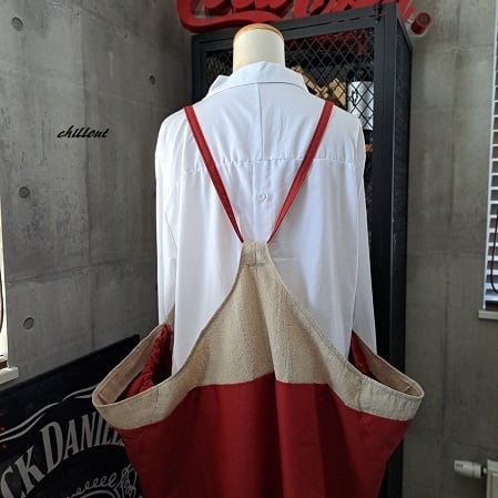 【背中がかわいい】エプロンドレス:リネン×レッド【0993】