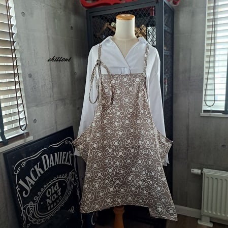 ブラウン花柄のエプロンドレスが出来上がりました。