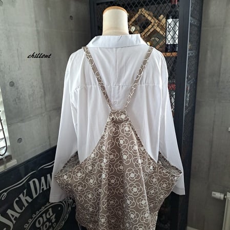 【背中がかわいい】エプロンドレス:ブラウンフラワー【0896】