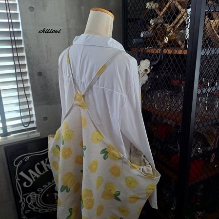 【背中がかわいい】エプロンドレス:レモン:ソフトリネン【0961】