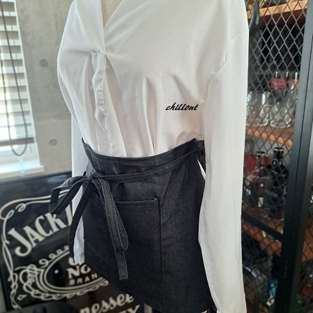 ブラックデニムのバリスタショートエプロンが出来上がりました。