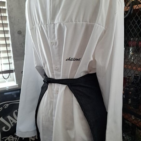 ブラックデニムのバリスタショートエプロンが出来上がりました。
