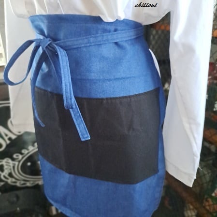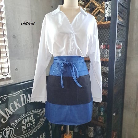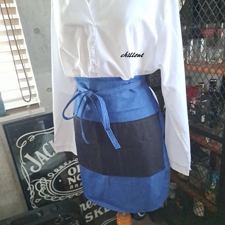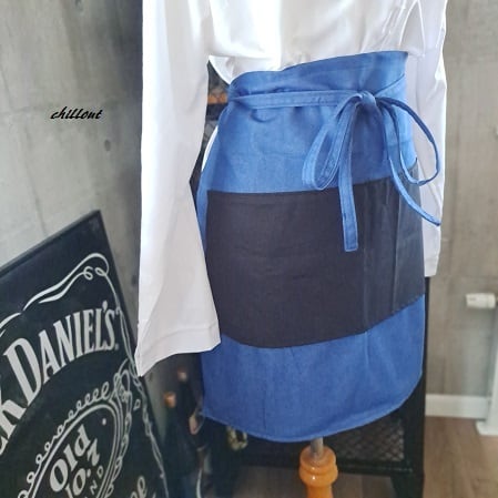 ブルーデニム×ブラックのバリスタショートエプロンが出来上がりました。