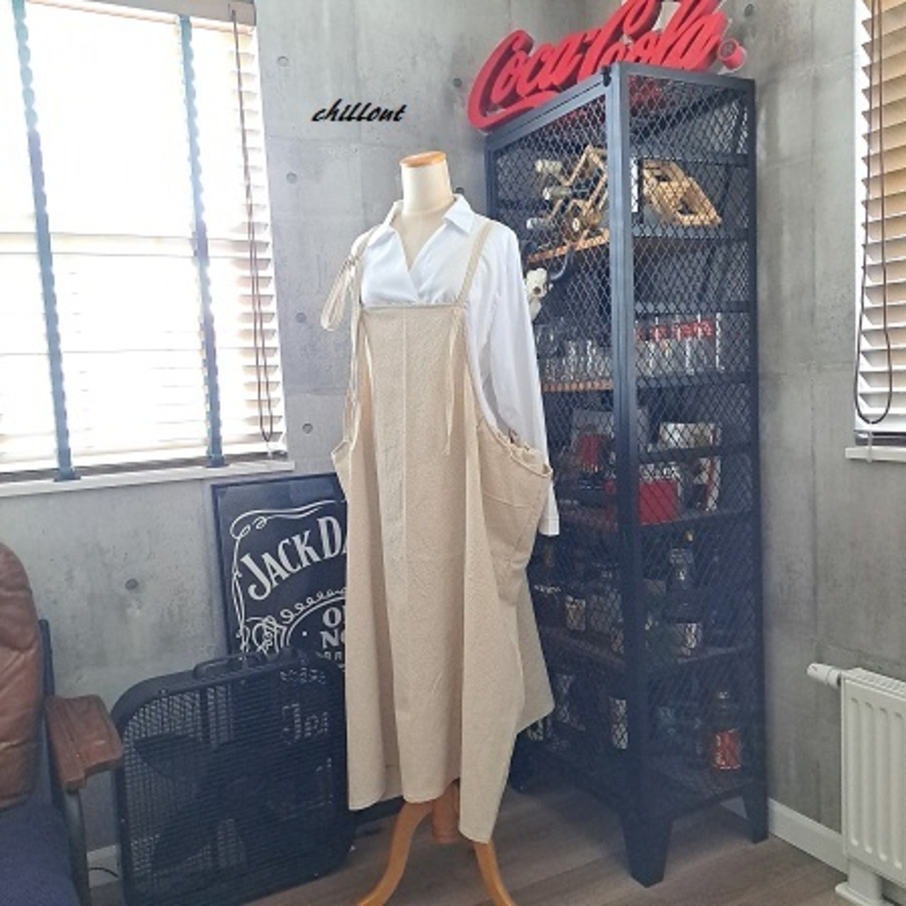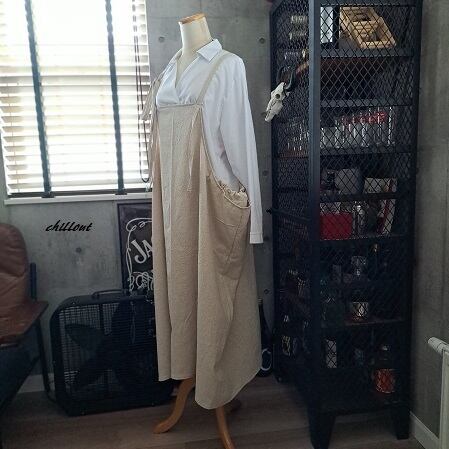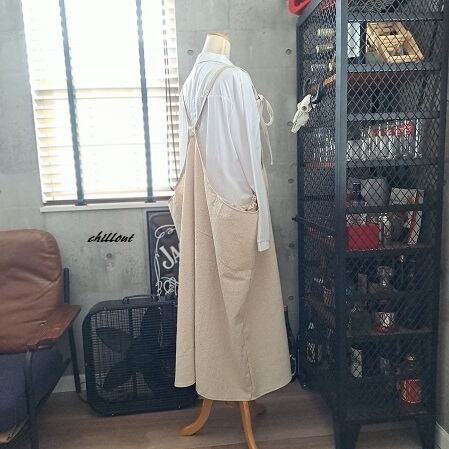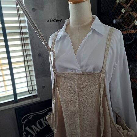 不動の人気を誇るワッシャーリネンにマキシ丈のエプロンドレスが登場しました。