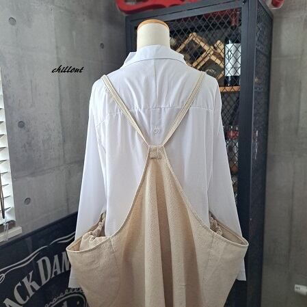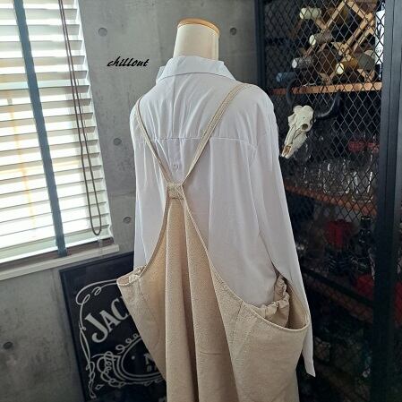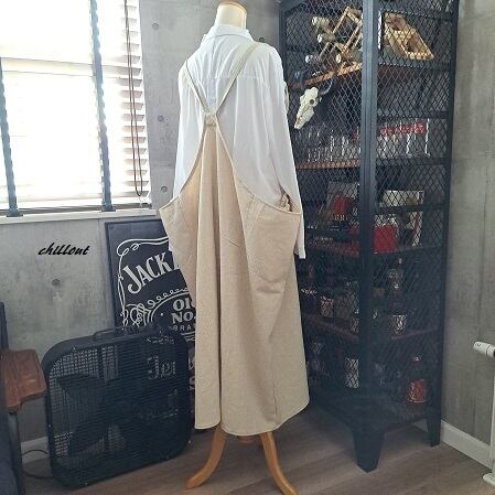 【背中がかわいい】マキシ:エプロンドレス:ワッシャーリネン【1005】