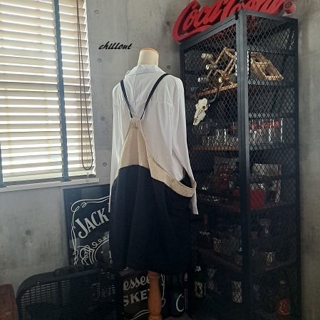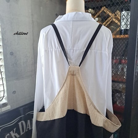 【背中がかわいい】エプロンドレス:リネン×ブラック【0986】