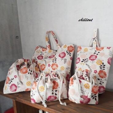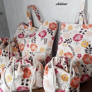 北欧リネンの花柄の入園5点セットが出来上がりました。