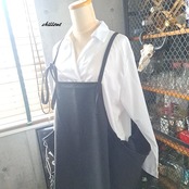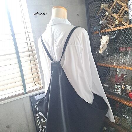 【背中がかわいい】エプロンドレス:デニム:ブラック【1031】