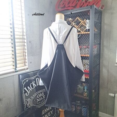 ブラックデニムのエプロンドレスが出来上がりました。