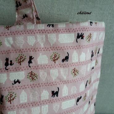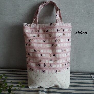 【入園・入学】入園バッグ5点セット:ピンクの猫柄切り替えセット【0022】