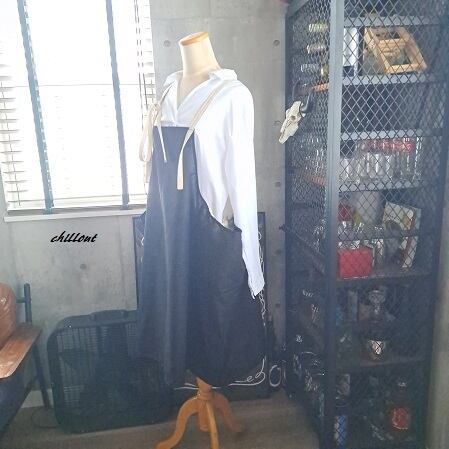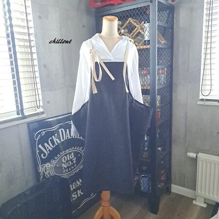 マキシ丈のエプロンドレスが出来上がりました。