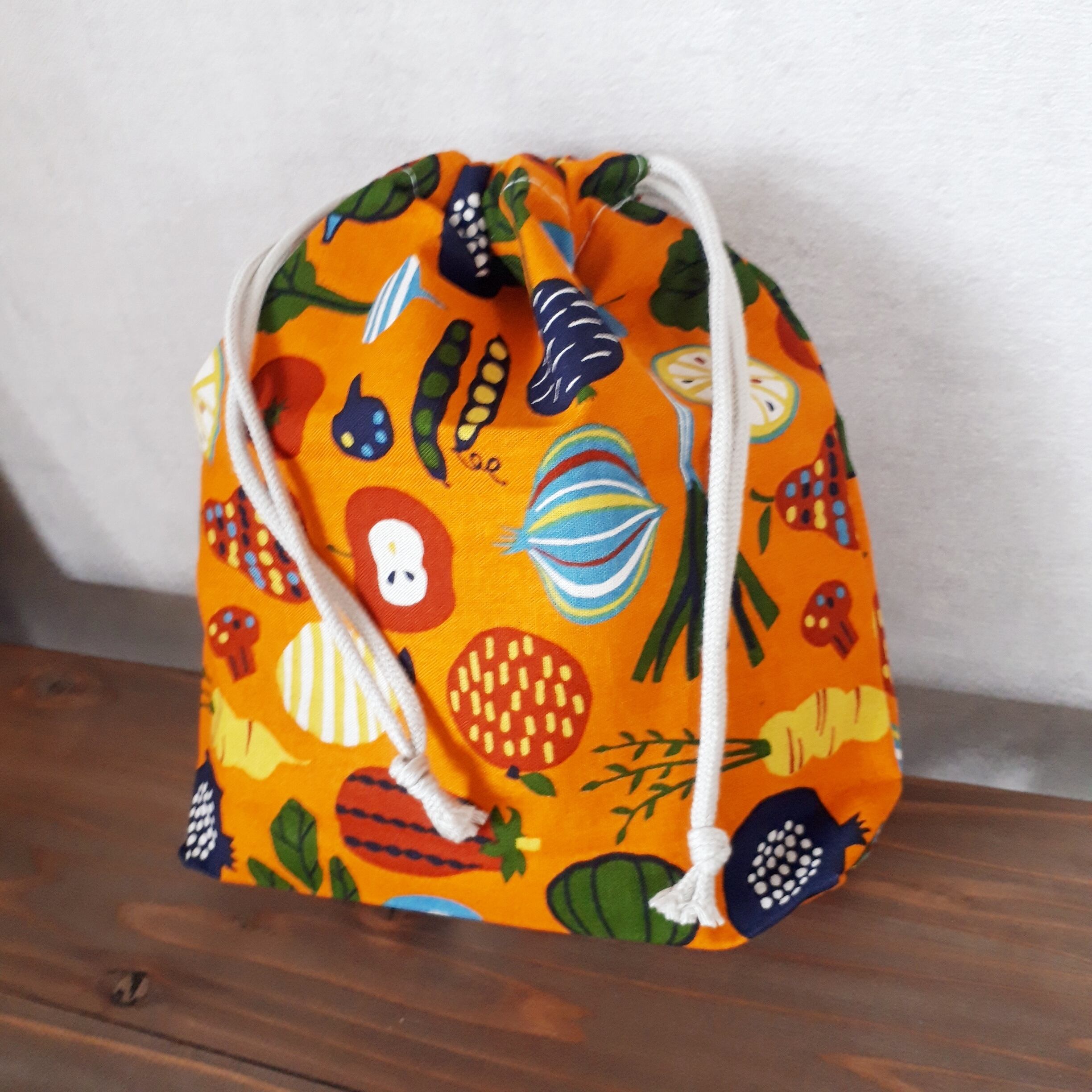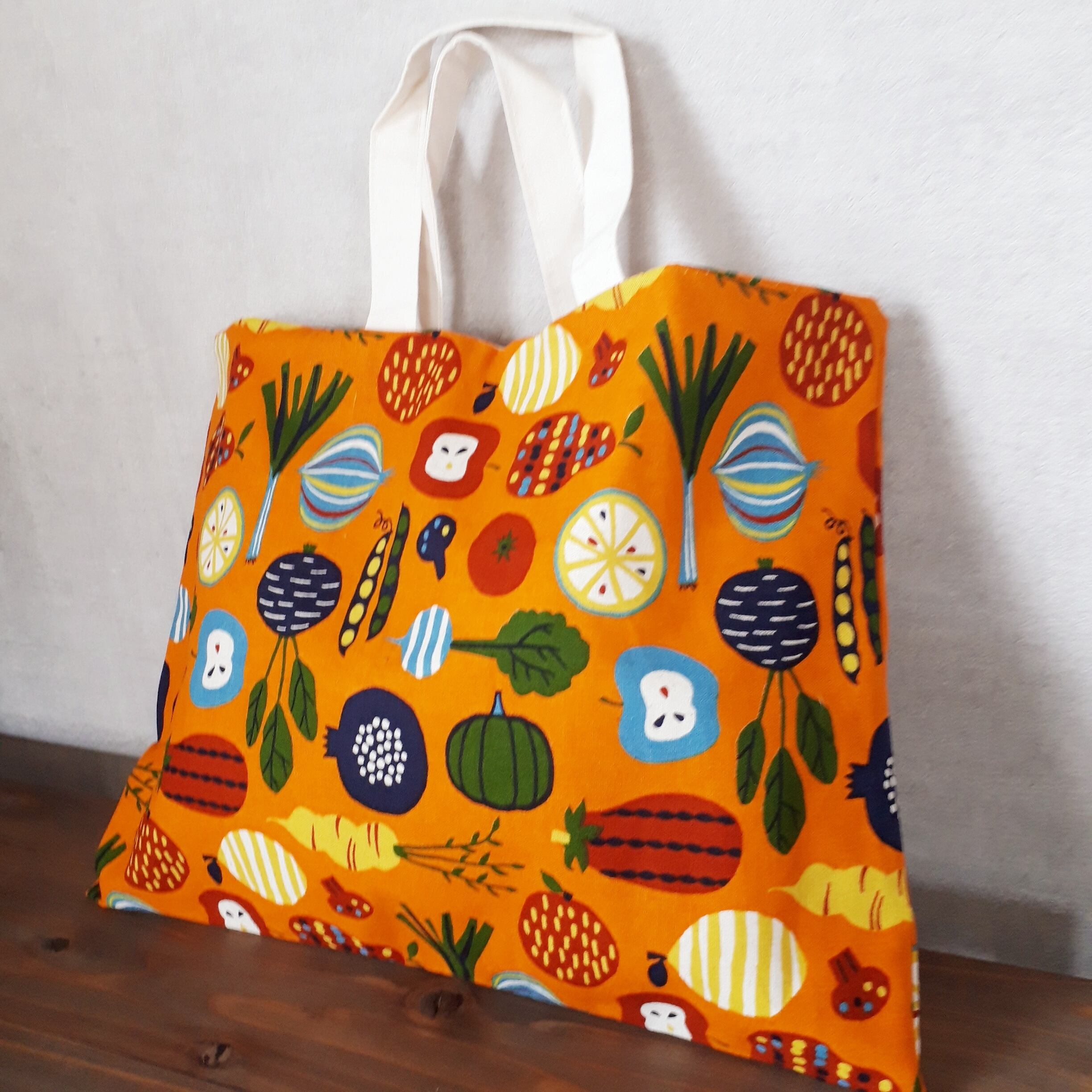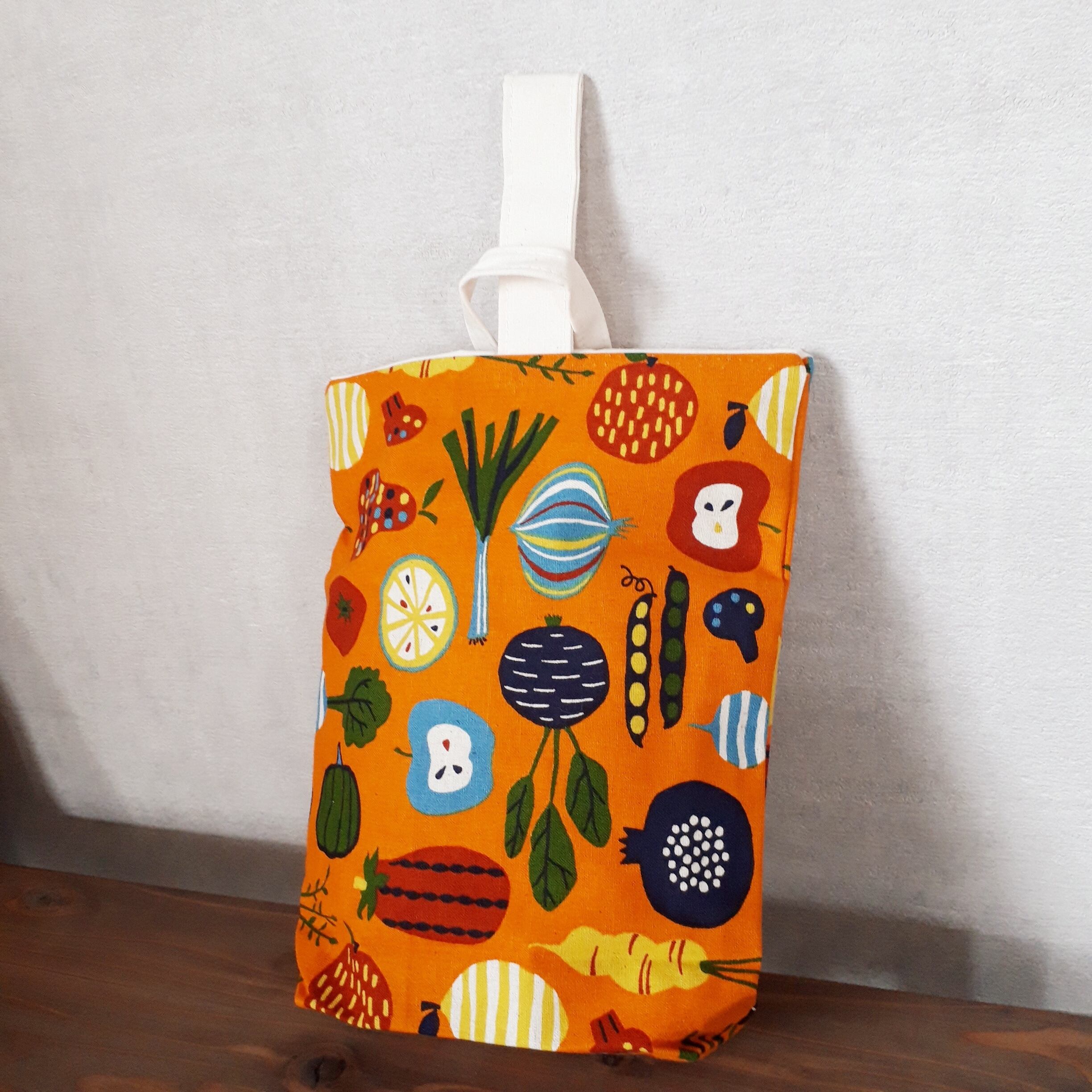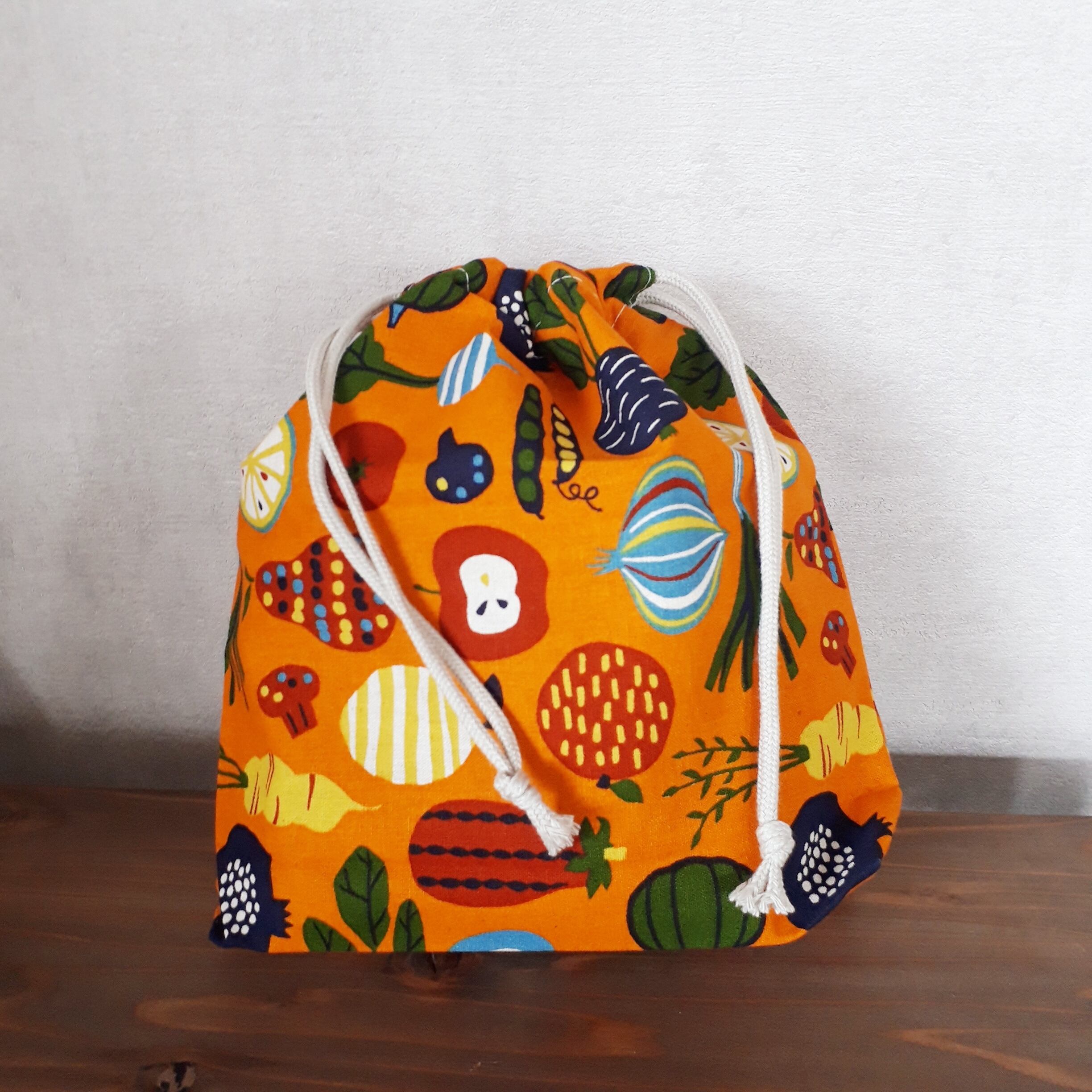 ポップなオレンジ色のフルーツバスケット柄の入園バッグセットが出来上がりました!