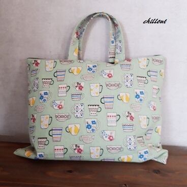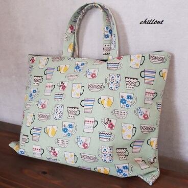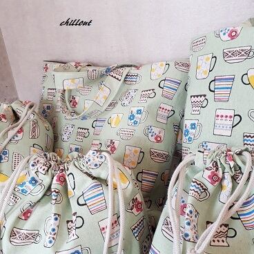 【ソフトリネン】入園バッグ5点セット:ティーカップ:エメラルド【0417】