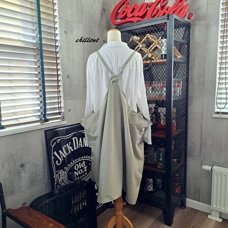 【背中がかわいい】マキシ:エプロンドレス:コットン:ピスタチオ【0973】