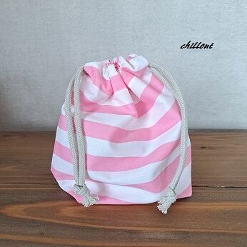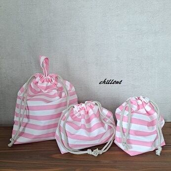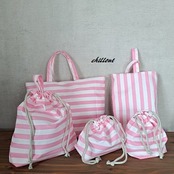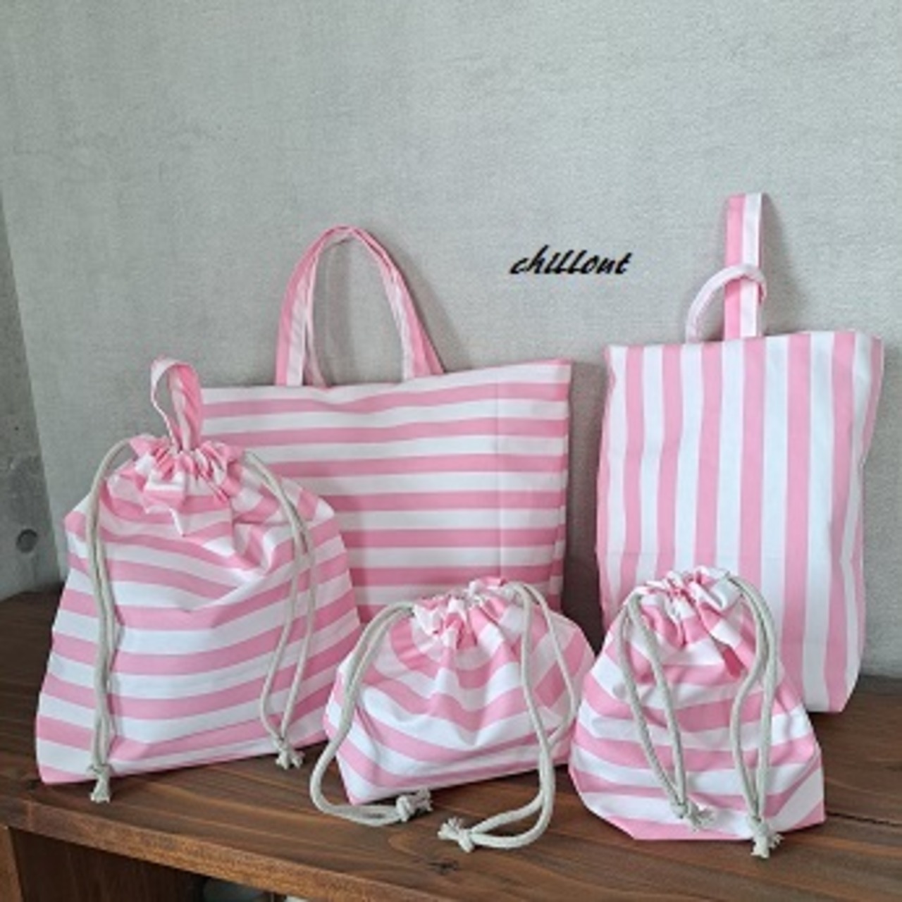 ピンクストライプの入園バッグ5点セットが出来上がりました!