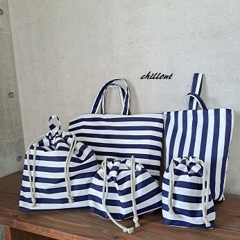ネイビーストライプの入園バッグ5点セットが出来上がりました!