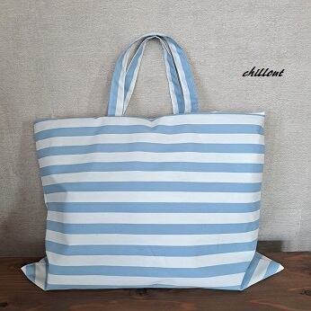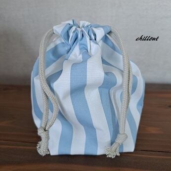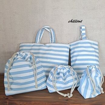 水色ストライプの入園バッグ5点セットが出来上がりました!