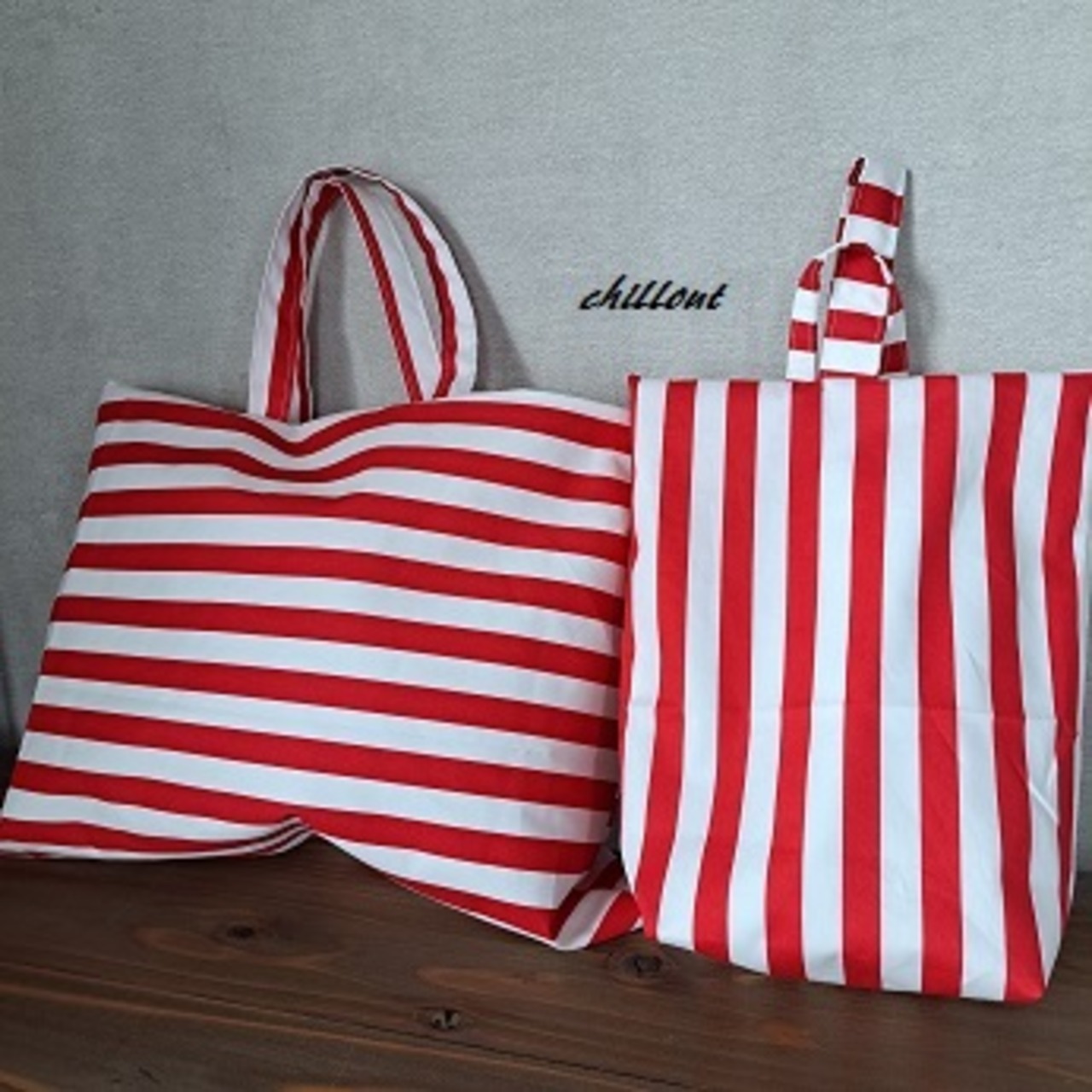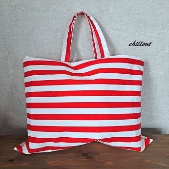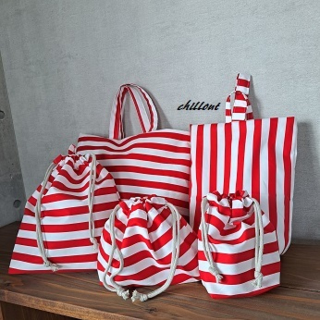 レッドストライプの入園バッグ5点セットが出来上がりました!