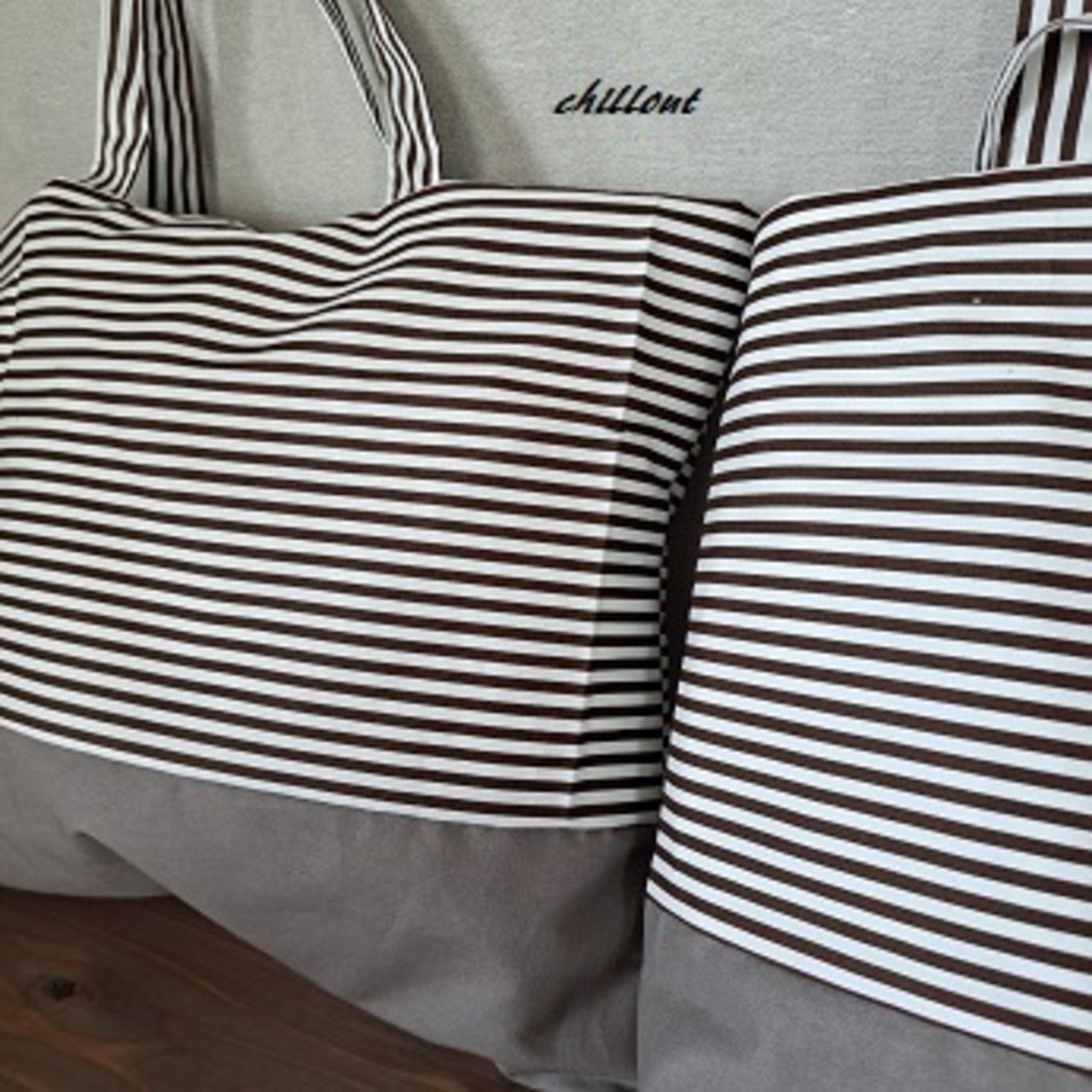 ブラウンストライプ×ブラウンの切替2点入園セットができあがりました。