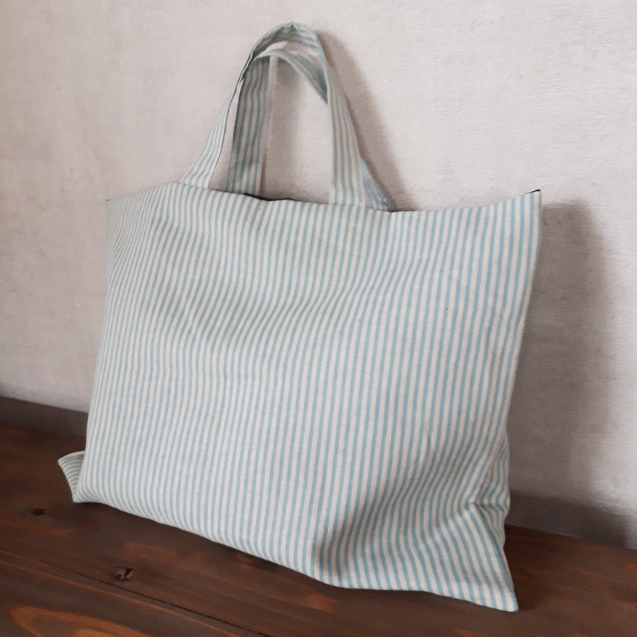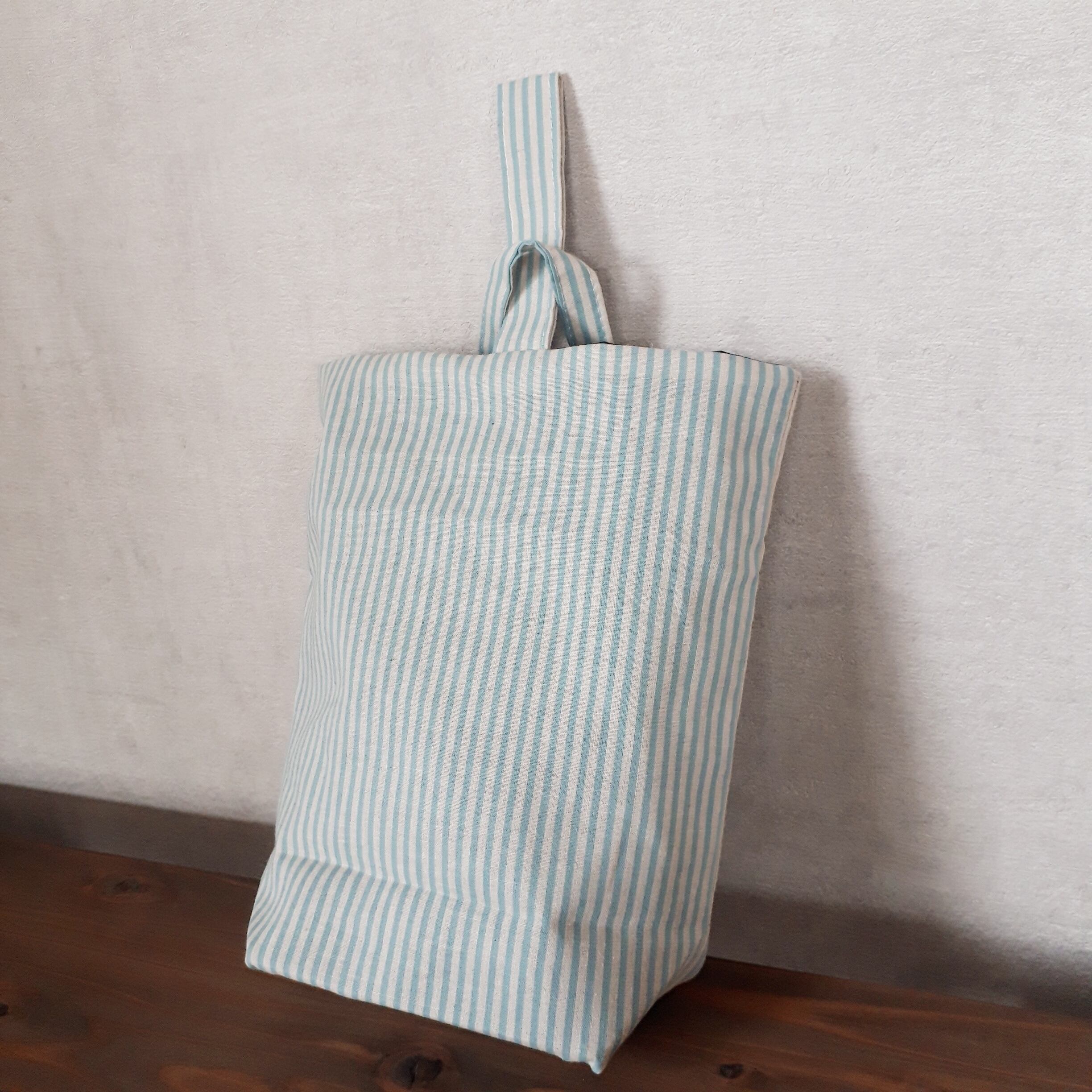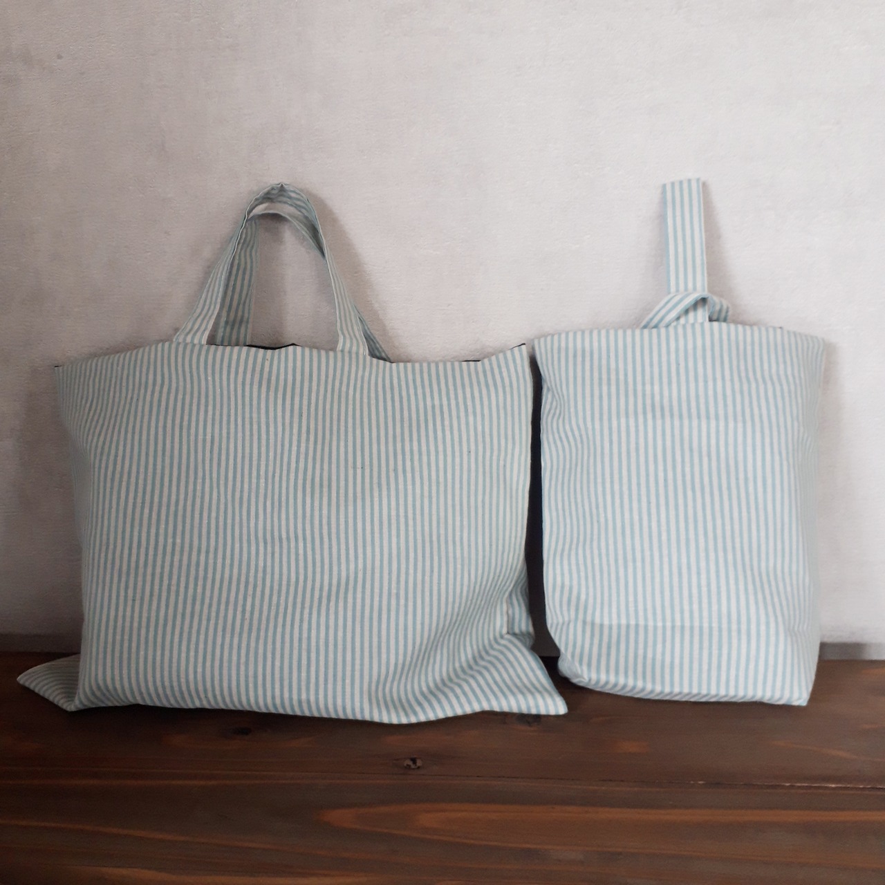 水色ストライプの入園2点セットが出来上がりました!