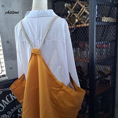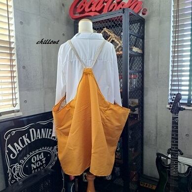 【背中がかわいい】エプロンドレス:マスタード×リネン【0932】