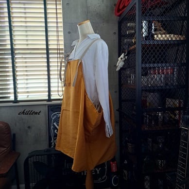 マスタード×ナチュラルリネンのエプロンドレスが出来上がりました。