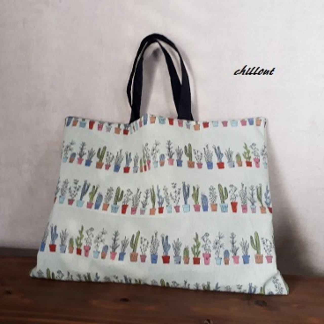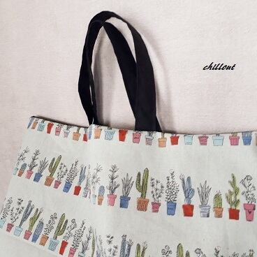 北欧デザインのおしゃれなサボテン柄のレッスンバッグが出来上がりました。